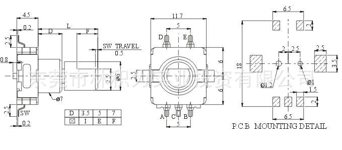 RE11系列:1.5行程旋转编码开关编码器,按压及旋转触感舒适、,按压手感层次感强,旋转手感定位明显、顺滑,按压声响极小,旋转声响微小,摇摆晃动量小,旋转定位虚位小,且大大减少因外在力施加于轴柄时而产生的误触发现象,是汽车音响、空调、仪表、示波器、医疗器械及仪器等调节音量、频率、速度、亮度功能产品的最佳选择。