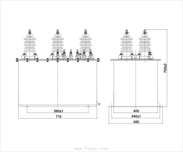| | 技术参数: 互感器的零序电压线圈性能如下: 在一次线圈施加三相平衡的额定电压,零序电压线圈开口三角接有200VA(cosφ=0.8)负荷的情况下,当一次线圈任何一相线端 和中点短接,则开口三角形为: (1)二次线圈接在0.5级额定负荷时为100±10V; (2)二次线圈接在110%倍额定电压下长期运行。