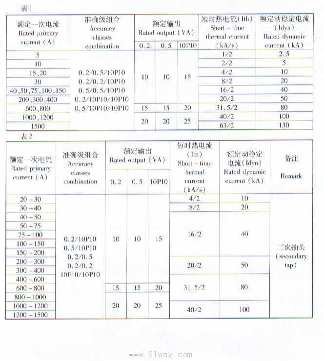 LFZJ3-10型电流互感器主要技术参数: