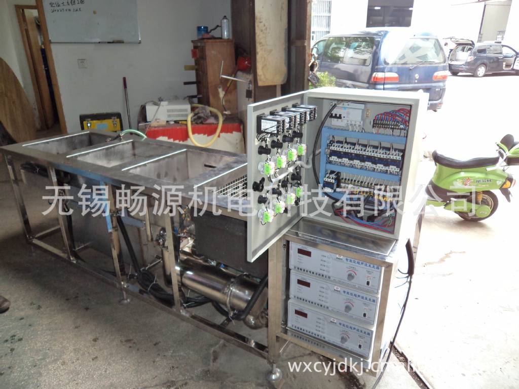 品牌 型号 频率 功率 温度 加热功率 烘干功率 畅源 CY-230 40K 3000W 0-100℃ 9000W 6000W 配制参数: 使用优质振子,出力强劲。 槽体材质为不锈钢SUS304,经久耐用。 弹筒式不锈钢加热管,EGO温控,发热效率高。 它激式发生器,性能稳定,输出强劲。 超声功率0~100%可调,设不锈钢排水球阀。 产品特点: ◆槽体采用进口不锈钢制造,耐酸耐碱,外形美观大方。 ◆采用进口优质高Q值换能器和独特的超声发生器,超声波输出强劲有力。 ◆采用西德进口粘接剂和独特粘接工艺,确保换能器在100水温长时间工作,经久耐用。 ◆设有自动温控加热装置,温控范围:常温-100℃。 ◆超声波发生器和缸体分体结构,采用高频线座连接。 ◆使用及保养方便。 ◆超声波发生器采用目前国际领先的他激式震荡线路结构,较传统的自激式震荡线路结构在输出功率增加15%以上,能最大限度的发挥换能器的潜能。工作电压AC220±10V。具有过压,过流,输出短路等保护措施。有频率微调、频率自动跟踪的功能,在不同工况下都能达到最佳效果。带动清洗液形成细微回流,使工件污垢在被超声剥离的同时迅速带离工件表面,提高清洗效率。具有功率无级调节的功能,输出功率可实现10%——100%的连续调整,以适应各种清洗对象的要求。 应用范围: (1)机械行业:防锈油脂的去除;量具的清洗;机械零部件的除油除锈;发动机、化油器及汽车零件的清洗;过滤器、滤网的疏通清洗等。 (2)表面处理行业:电镀前的除油除锈;离子镀前清洗;磷化处理;清除积炭;清除氧化皮;清除抛光膏;金属工件表面活化处理等。 (3)仪器仪表行业:精密零件的高清洁度装配前的清洗等。 (4)电子行业:印刷线路板除松香、焊斑;高压触点等机械电子零件的清洗等。 (5)医疗行业:医疗器械的清洗、消毒、杀菌、实验器皿的清洗等。 (6)钟表首、饰行业:清除油泥、灰尘、氧化层、抛光膏等。 (7)化学、生物行业:实验器皿的清洗、除垢。 (8)纺织印染行业:清洗纺织锭子、喷丝板等。 (9)石油化工行业:金属滤网的清洗疏通、化工容器、交换器的清洗等。