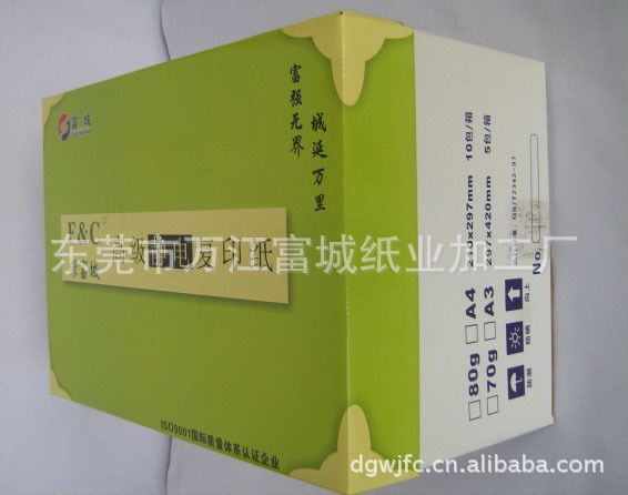 富城纸业,主要是集开发、生产、销售和服务为一体的综合性企业。在广东东莞及河南新乡均设有工厂,目前已开发出静电复印纸、电脑打印纸、传真纸、彩色喷墨纸、高光相纸、工程图纸、收银机纸、彩色复印纸、一体机纸等办公用纸及电脑纸表格印刷。并且通过ISO9001:2000国际质量认证。富城纸业正朝着产品多元化、营销网络化、市场信息化的方向发展。