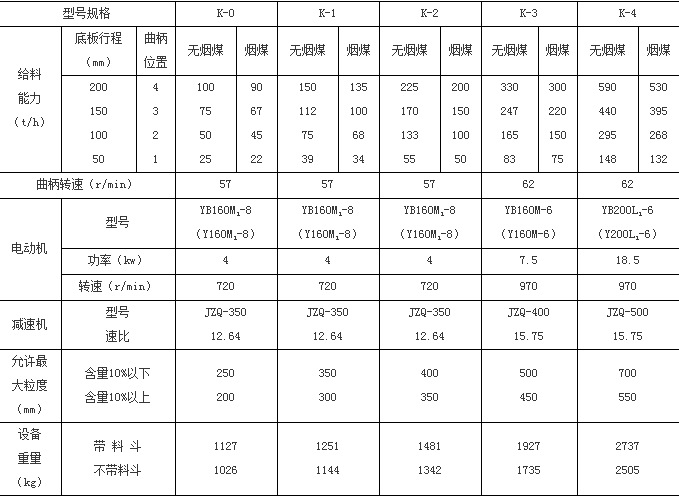 本机可根据需要设有带漏斗、不带漏斗两种形式。给煤机设有两种结构形式:1、带调节闸门 2、不带调节闸门,其给料能力由底板行程来达到。