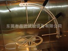 外壳及内箱全部采用SUS304不锈钢材料,试验箱上部为试验室和控制屏,下部安装水泵(进口格兰富)和电磁阀(原装进口)、恒温及回水双水箱(SUS304不锈钢材料)、转台电动机(松下电机)和减速传动机构