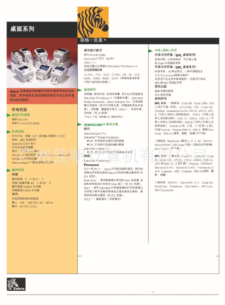 Zebra/斑马/桌面打印机 2844