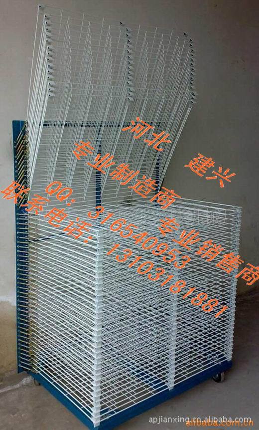 1.采用不锈钢或A3方通和角钢制作2.机脚配有脚轮和脚杯3.网片采用不锈钢或A3钢圆支制作,带有弹簧机构,可弹升呈30度角,配有活动脚轮4.网片规格:边丝:4mm-12mm,内丝:1.8mm-4mm 特点:耐高温、耐腐蚀。 用途:用于印后制品的凉晒、烘干。