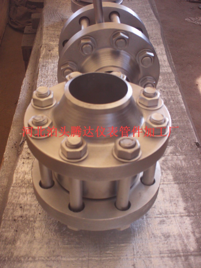 本厂生产的节流装置符合IS05167和GB2624-81的规定,其节流件分为锐孔板、喷嘴、古典式文丘里等;同时也生产非标准的节流装置,如1/4圆喷嘴,双重孔板,径距取压组合式长径喷嘴,圆缺孔板,偏心孔板等。