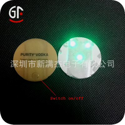 LED闪光贴,可贴于任何需要亮光的物品上。例如瓶底,可代替杯垫使用。