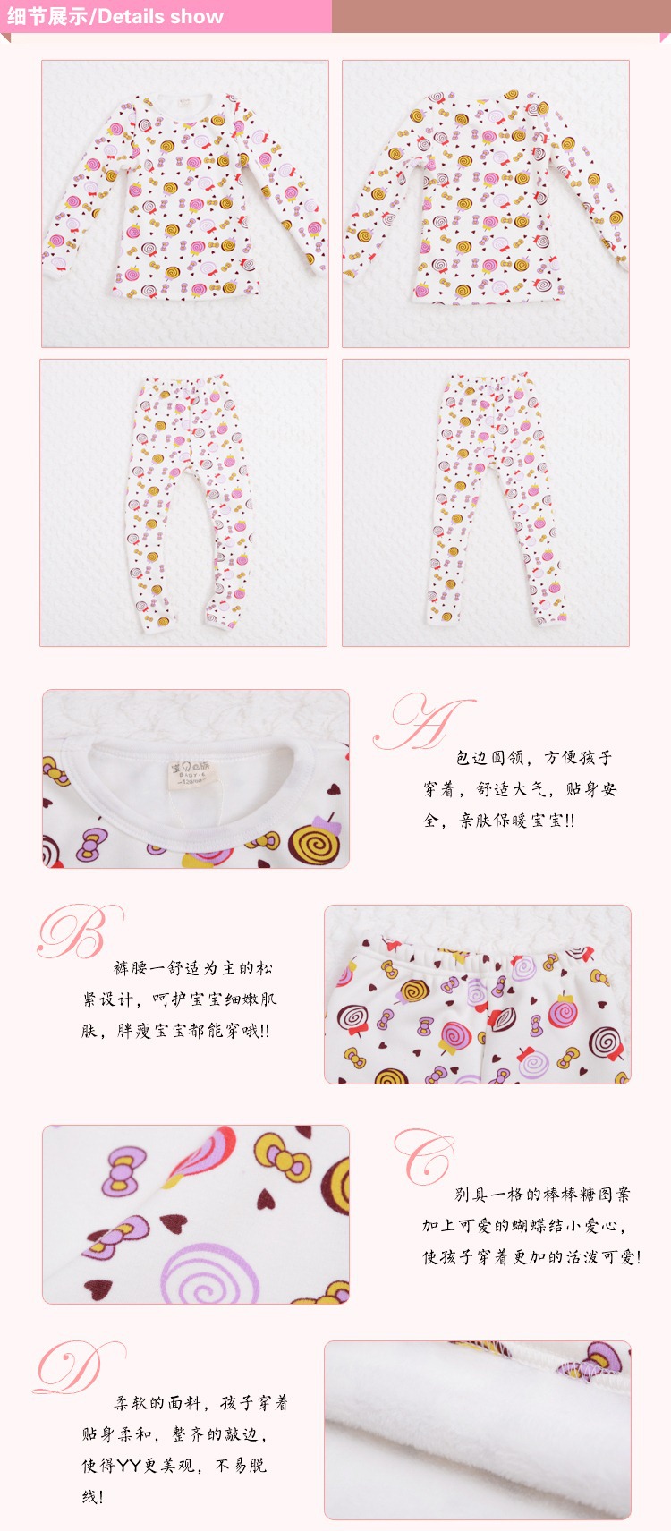 韩衣尚冬装新款儿童纯棉加厚棉毛衫裤 女童保暖内衣套装批发S268
