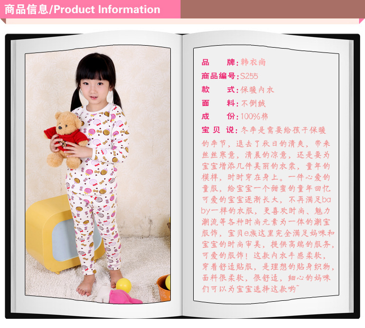 韩衣尚冬装新款韩版女童可爱花色图案秋衣秋裤保暖内衣套装S255