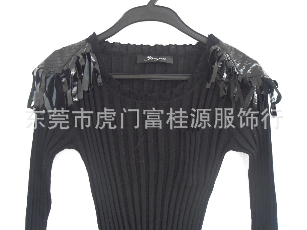 欧洲站 肩配真皮流苏 修身羊毛衫