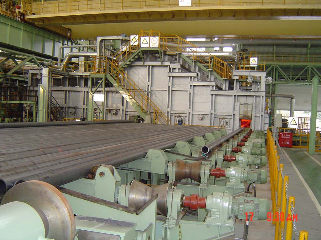11. 水压试验:在水压试验机上对扩径后的钢管进行逐根检验以保证钢管达到标准要求的试验压力,该机具有自动记录和储存功能;
