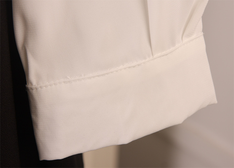 选用高档雪纺+复合斜纹面料,透气,手感软滑,亲肤舒适,有垂感。