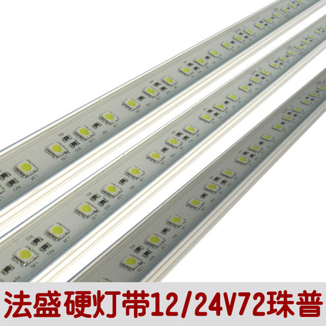 LED硬灯条采用72珠5050贴片,灯珠可采用美国普瑞,台湾晶元,光通量20LM/每珠,发光一直性好,支架铝型材有'V"和“U"平底,其中”V"型不做滴胶防水,“U"型可做滴胶防水,发光颜色均为有单色,更多用于橱柜和珠宝柜的照明备注:配件1.平槽轨道10元/m;2.V槽轨道10元/m;3.防水灌胶8元/mLED硬灯条优点1、LED硬灯条出口欧洲质量标准,真正高档耐用,载体采用铝基板组成,散热好,每三个LED可以沿着上面切线任意截断,不损坏其它部分。2、LED硬灯条适用于珠宝柜,灯箱装饰,发光招牌,亮化工程等,超薄耐高 温,散热性极好3、LED硬灯条工作电压:直流12V4、低光衰,3000小时内光衰在3%以内,1000小时后基本无光衰5、超长的使用寿命,正常使用时寿命可达到5~10万小时6、LED硬灯条使用SMDLED为正规芯片生产,亮度高,光衰低,颜色一至,寿命长,有多种颜色可供选择