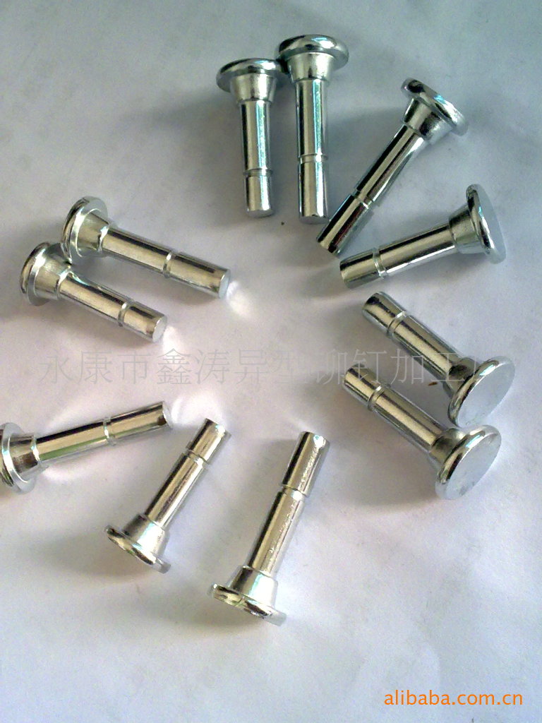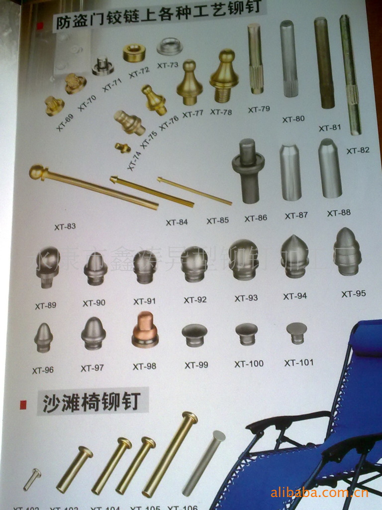 本公司供应碳钢、铜、铝、不锈钢等材质的半空心铆钉、实心铆钉、空心铆钉、台阶铆钉,半圆头铆钉、平头铆钉、沉头铆钉;.各种非标异型铆钉;童车铆钉.推车铆钉.文具铆钉.汽车配件铆钉.家用梯铆钉,防盗门铰链上各种工艺铆钉,异形铆钉, 提供国标及非标订做。