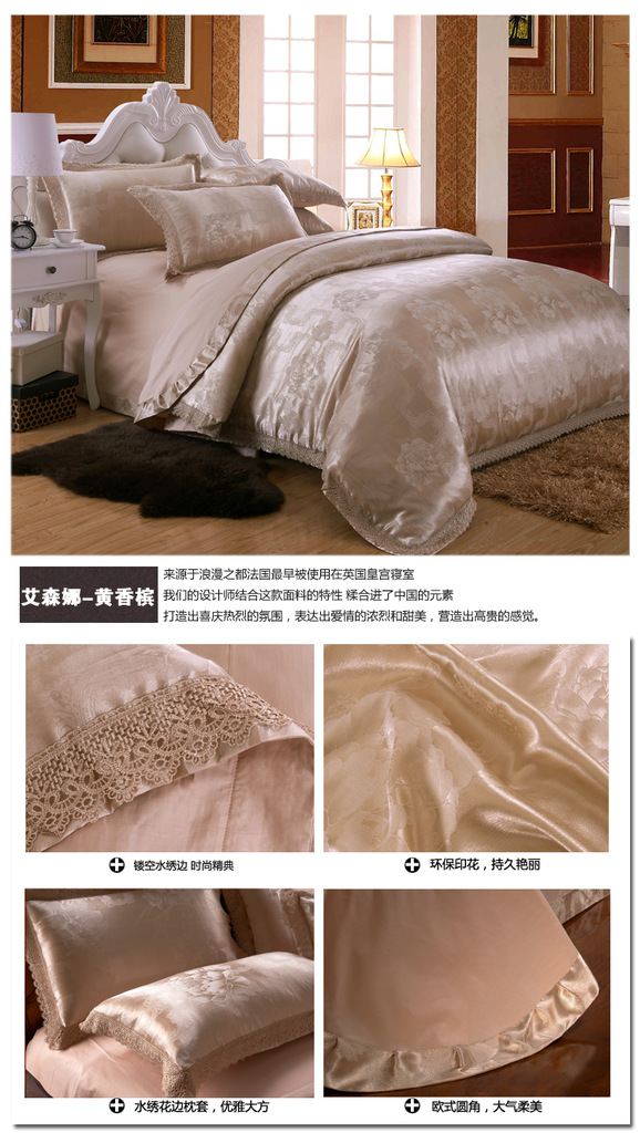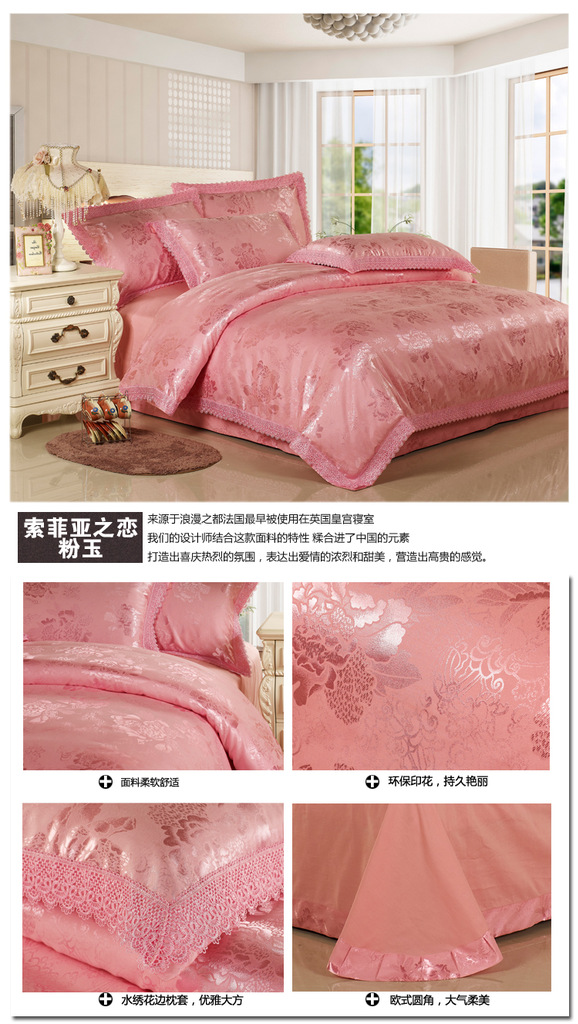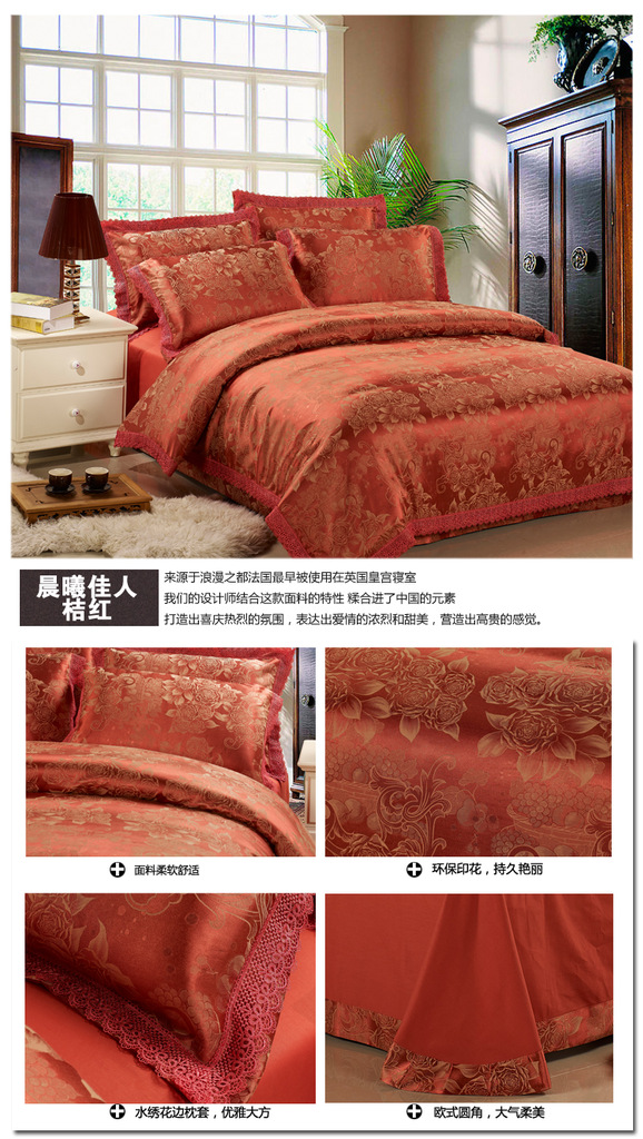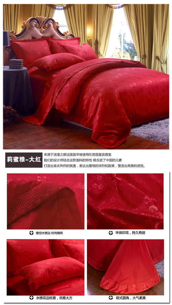 丝棉大提花四件套 | 小号 | 被套200*230cm | 重量约2.5kg | 210元 | 大红色的需加10元 |