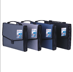 精致的外观,创新手提柄,配合精美的插口,以针织纹为外板与底部焊接,13层内袋,可分类存放资料。