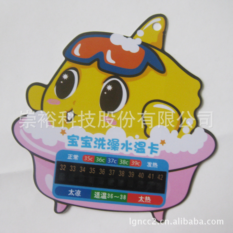 将洗澡卡至于水中,能准确测出水温,液晶读数,直观方便、随身携带,并可任意弯曲,不易断裂,避免了传统温度计造成的玻璃破碎和水银中毒的危害,具有安全、环保、科学、实用的优点,专业呵护婴儿的洗澡卡是每家必备的家庭医生