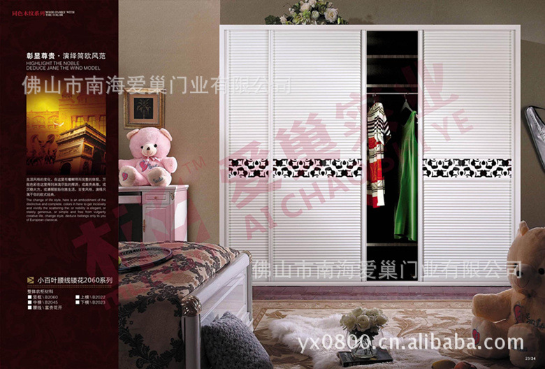 提供高质量的衣柜成品门,并提供高质量的铝材包覆,功能板材包覆,欧式线条木塑包覆,凹凸芯板吸塑,板材PVC饰面,皮革批发,五金批发。