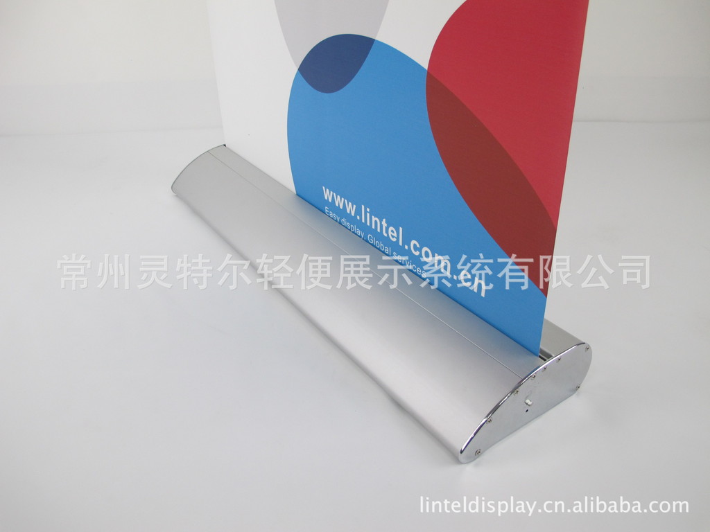 侧板更是使用镀铬的工艺,表面光滑耐看,绝非市面上普通的易拉宝造型设计及工艺,满足了中高档客户的需求,并有多个尺寸可以选择!