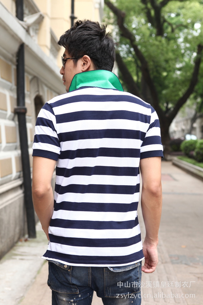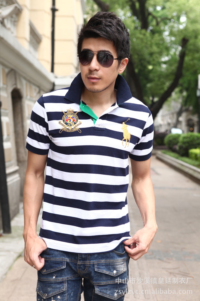 站西外贸品牌男式polo短袖皇冠大金马刺绣条纹男T恤工厂特价供货