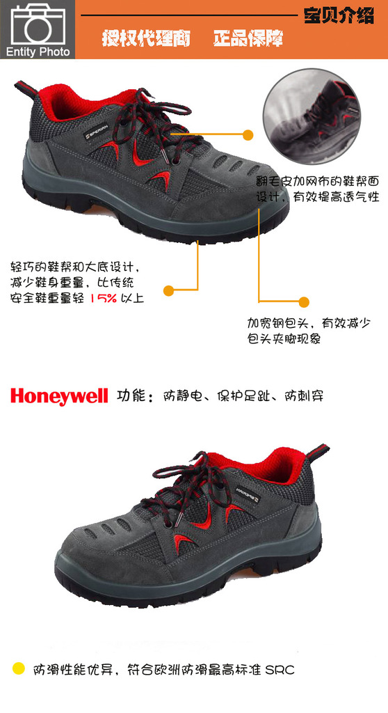 优点:透气、减少夹脚、比传统安全鞋轻15%