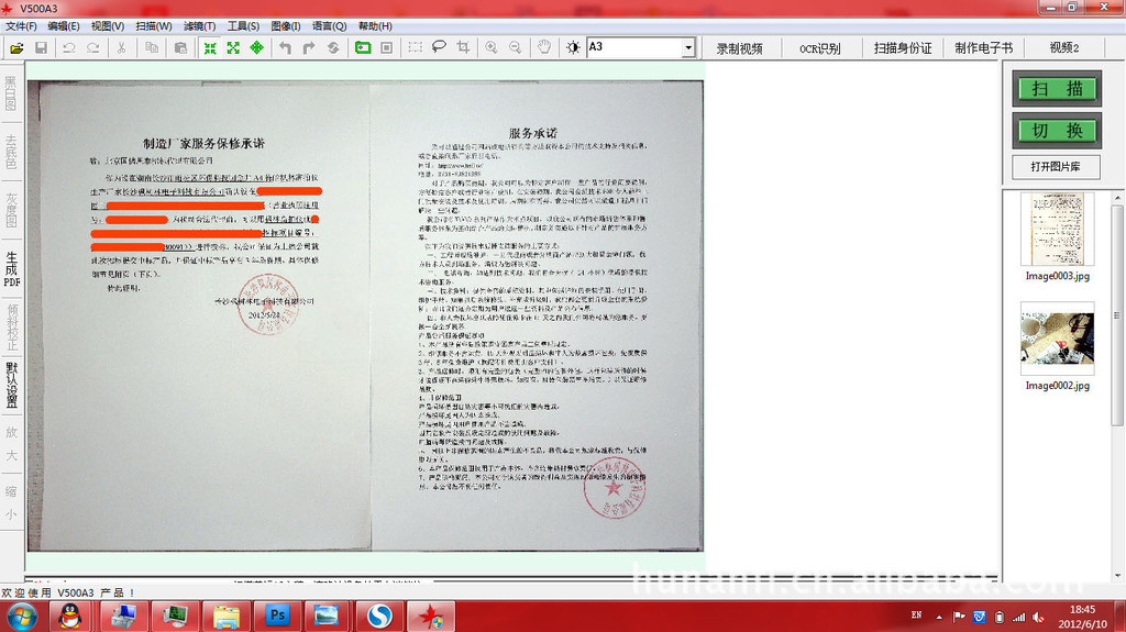 拍摄尺寸 | A3、A4、A5、A6、A7、名片、票据、身份证 |