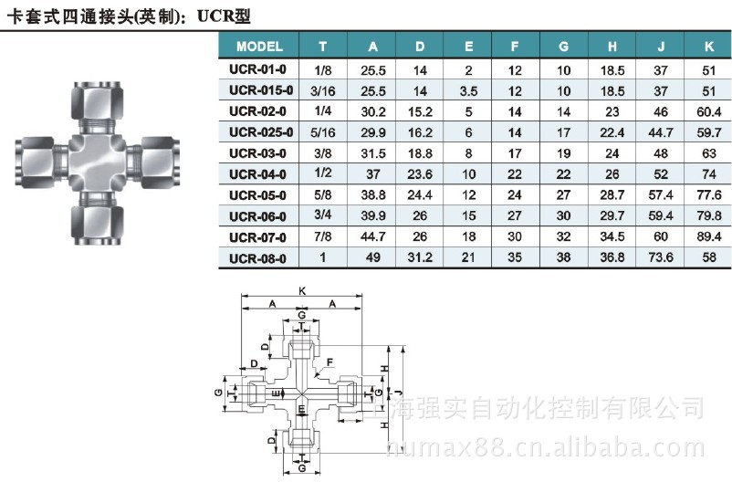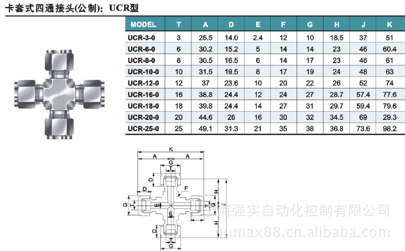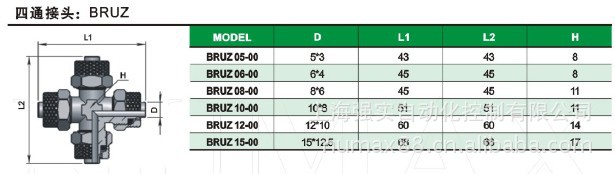 四通快速接头(金属接头),参数如下: