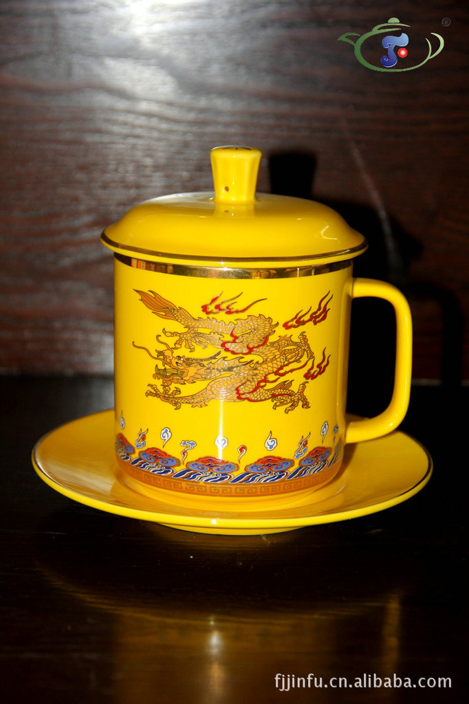 陶瓷杯批发 黄色四件套茶杯 办公室茶杯 陶瓷会议杯