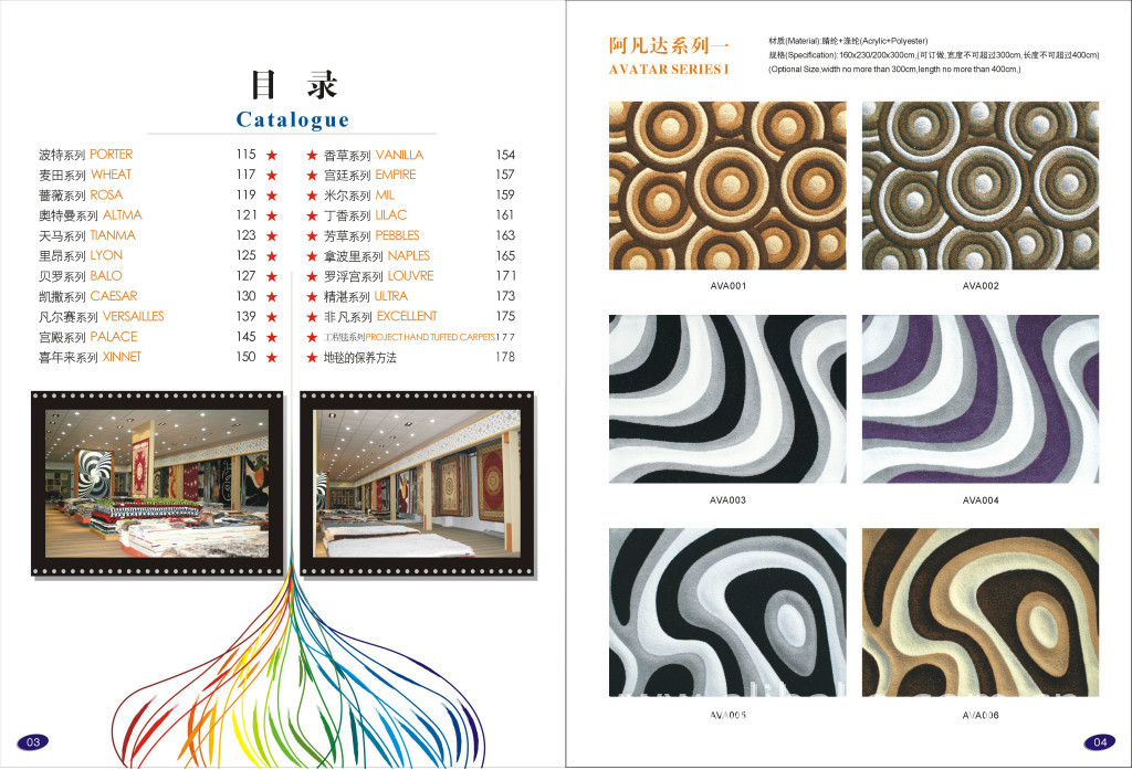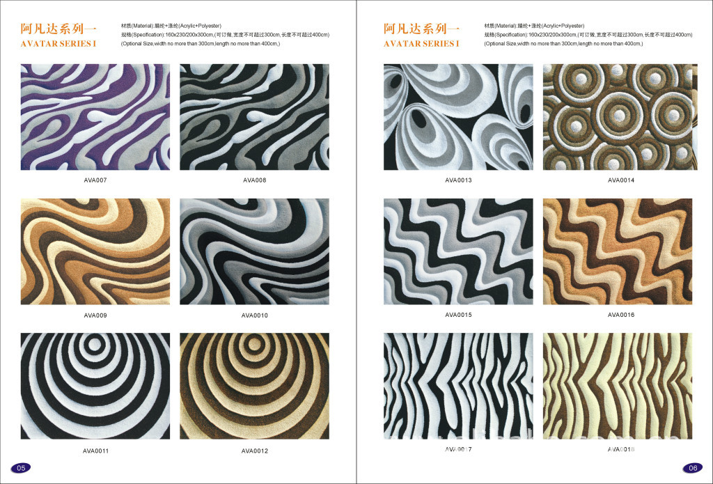 阿凡达系列地毯毯面平整、丰满,达到国际商业重量级地毯标准。具有卓越的外观保持性、耐用性、稳定性、舒适性。材质一般是80%羊毛、20%尼龙或者100%尼龙。产品图案色彩可单一颜色,也可多种颜色,颜色最多可达16色,因此地毯图案色彩可朴素简约、可华丽多姿,风格可豪放粗矿、可丰富细腻。尤其是用做大厅、会议室等公共空间,更能彰显其辉煌大气。