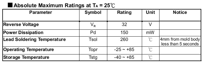 产品描述:快速响应 ,高光敏感性 ,小结电容,无铅 ,符合RoHS标准。技术含量高,功耗低,质量好,抗干扰,,灵敏度高。