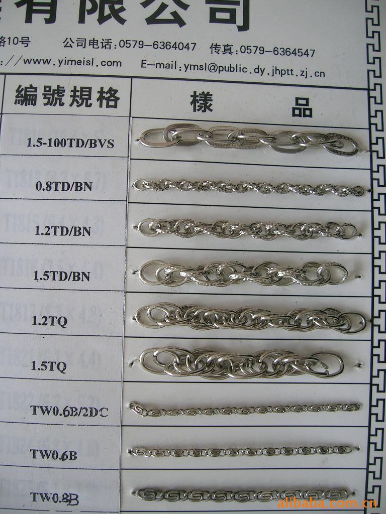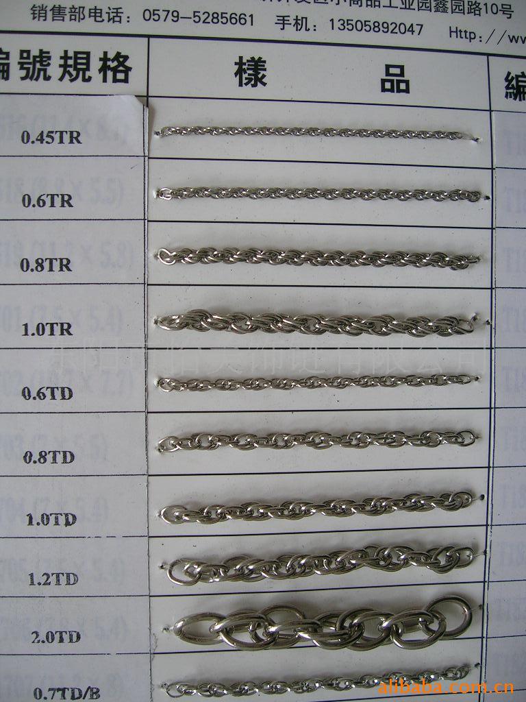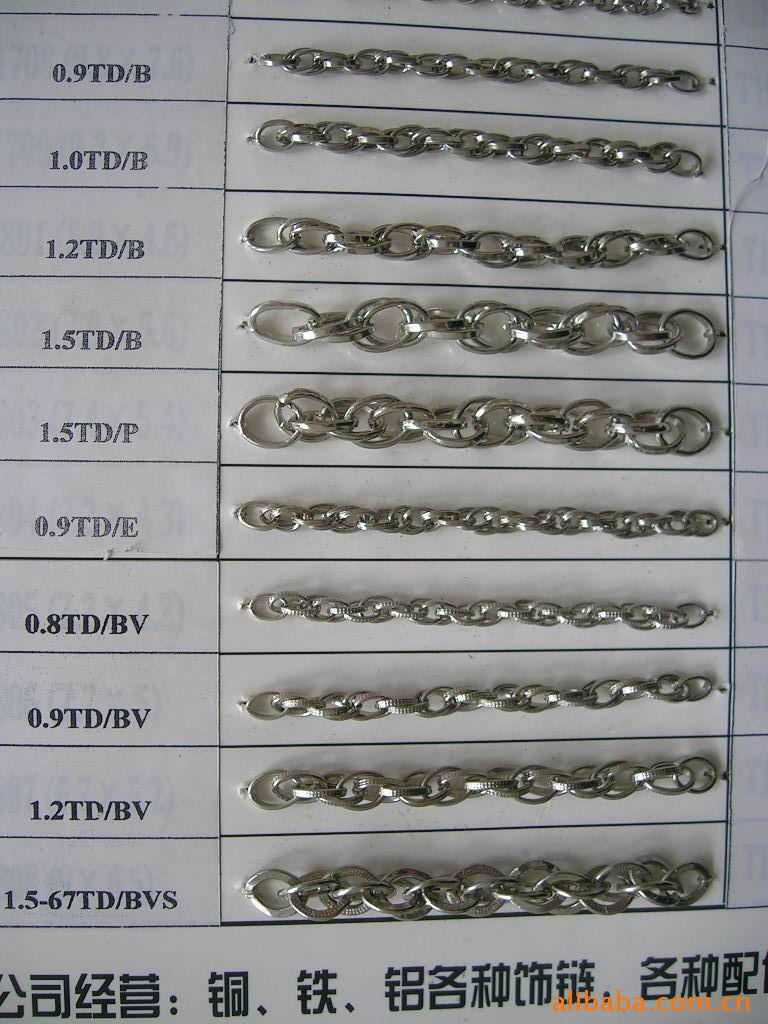 我公司专业生产饰品链,式样如珠链、服饰链、钥匙链、项链、手链、万字链.双仔链,圆环链,斯巴达链,法国绳链,反扭链,子母链,网链,铁皮链,垂扁链,蛇链,饰链配件、金丝链、麻花链,龙虾扣、弹簧扣、钥匙圈、皮带扣,钻石链,波士顿链,蛇链等。