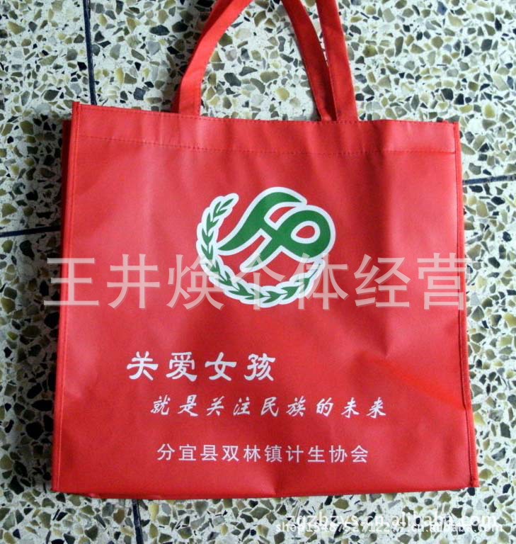 产品名称】 无纺布手提袋 【产品编号】 DSST-0110 【价格说明】 根据客户定制的环保袋数量、尺寸规格、印刷工艺、制作工艺、原料材质等定价。【规格尺寸】 可根据客户需要定制 【产品颜色】 有多种花色的布料可供选择,还可以为用户定制专版图案或颜色的布料。 【布料规格】 布料厚度有70g/75g/80g/90g/100g可供选择。 【印刷工艺】 可为客户印刷LOGO,印刷工艺为丝网印、热转印 【产品用途】 超市购物,商场购物 【广告效果】 企业的广告可满商场/满大街“移动”宣传