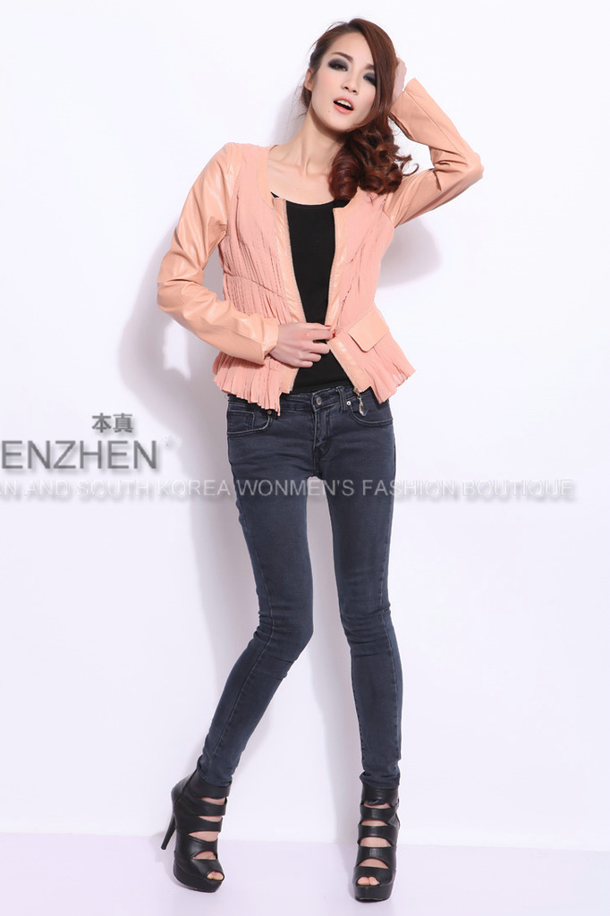 春装新款 曼休妮圆领拉链长袖短款外套 女