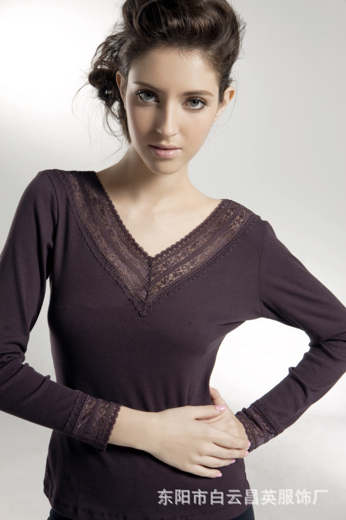 8110品牌亮丽人生V领棉罗文女士时尚长袖针织衫批发代理厂家直销