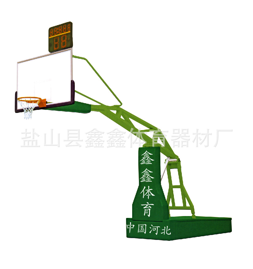 鑫鑫牌遥控电动液压篮球架,遥控器有效距离100米,是我厂研制的新型产品。及电动、手动起轮于一体,方便灵活,它采用三相四线制(380V,50HZ)电源,启动更强劲,升降更平稳,篮板采用高强度安全钢化玻璃(经过3c认证)加工而成,抗击力强,透明度高等优点。根据国际联合会(FIBA)标准研制而成,它已通过国家体育总局质检认证,多次承接国际国内大型比赛并接受到教练员及运动员的高度好评。