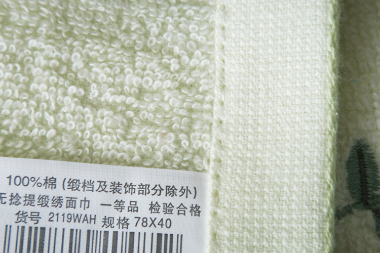 1)外观:无论是印花还是素色毛巾,只要用料讲究,工艺到家,色彩一定比较鲜艳,一眼看去就有一种新鲜感,而且图案印制清晰,毛圈均匀,缝边齐整。