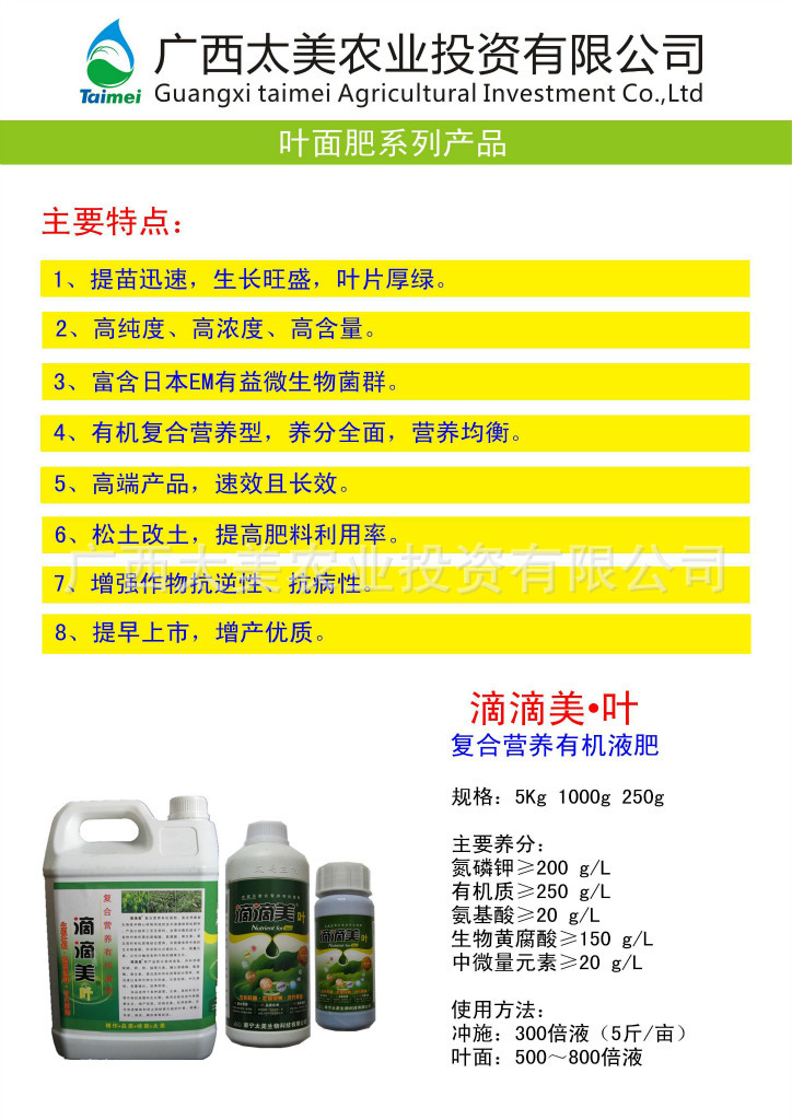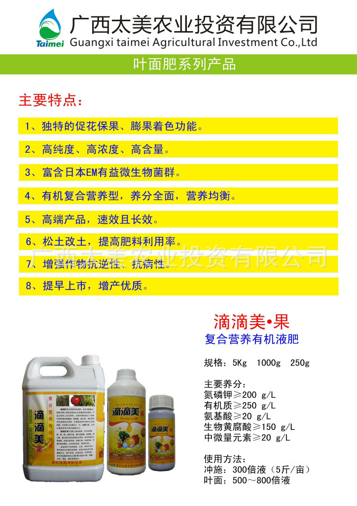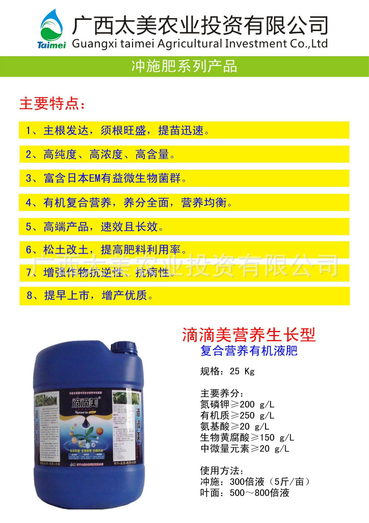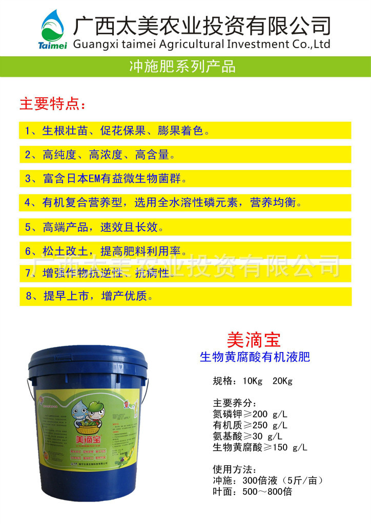 专业生产水溶肥、有机液肥、叶面肥、冲施肥、腐植酸、黄腐酸,供应通用肥料(非工业化肥)、水稻专用肥料、香蕉专用肥料、瓜果蔬菜专用肥料、葡萄专用肥料、茄子专用肥料、叶型肥料、果型肥料。