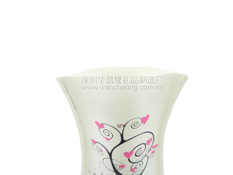 PVC材质的简易花瓶,整体压模成型,表面丝印花纹,非常耐用而且美观,可按客户要用订制大小,型状和图案。