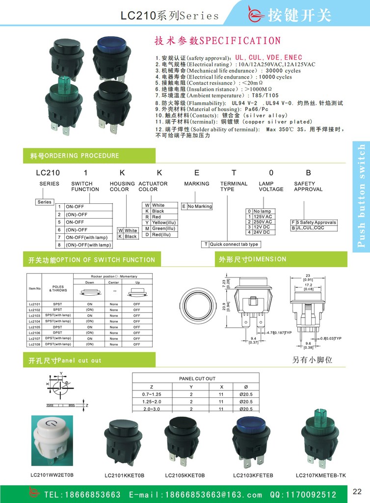 台湾按钮开关生产厂家批发销售各类型电子电器开关,做最专业的按钮开关生产厂家而努力,我司的这种开关均带有欧美认证,另外我司的按钮开关还有14MM 16MM 20MM等多种尺寸可以供大家选用,在这里我推荐大家使用14MM的 价格便宜,20MM的也不错,但价格稍稍要高一些,另外做高端产品可以选用16MM的,哪种尺寸的开关可以寿命达50万-100万次,高寿命,防水等级高达1P67大家可以放心选购我司的产品,我们将以最快的交期及最好的服务提供给大家,感谢您的光临!台湾按钮开关生产厂家批发销售各类型电子电器开关