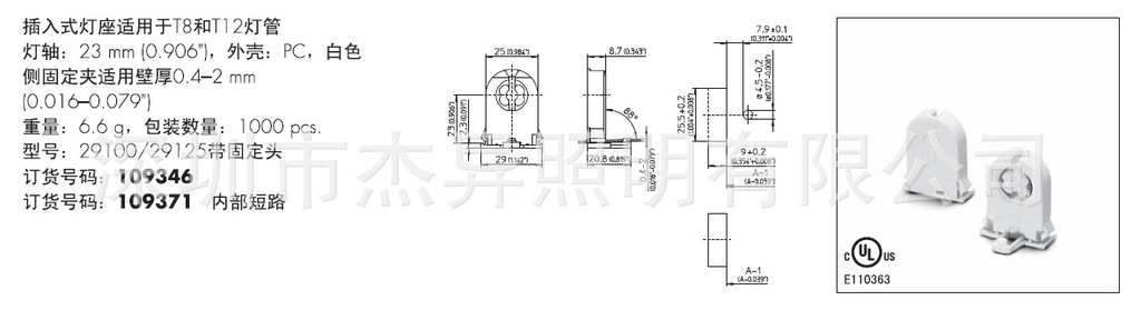 VS G13插入式灯座适用于T8和T12灯管29100/29125