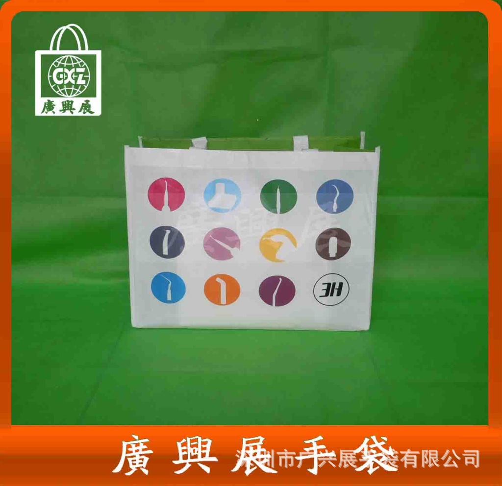深圳市广兴展手袋有限公司专业生产各种无纺布袋,环保袋,购物袋,礼品袋,编织袋,帆布袋,牛津布袋,束口袋,尼龙袋,绒布袋,折叠袋,广告袋,复膜袋,西装袋,镭射布袋,电脑包,旅游包等各种高难度优质手袋。工厂成立于2004年,自设厂房,占地面积2800平方,全体员工120多人,车缝生产员工80位,拥有多部裁料机,印刷机,腹膜机等高端生产机械,从裁料,印刷,车缝,包装一条龙专业服务。我公司通过厂家采购,大定量采购各种原材料等措施使降低了公司的成本,且保证产品优质且价廉,并切实将我公司的规模效应所获得的优势直接优惠于客户。多年的制袋经验造就了深圳广兴展手袋卓越的品质,产品生产过程中力求做到色彩丰富、印刷完美、做工精致、时尚环保,交货快捷适宜于任何公司、任何行业作为广告宣传、赠品之用。深受国内外广大客户信赖。目前公司先后为中国电信、三九集团、联想集团、安琪集团、康佳、索爱、格力空调、深圳电视台、深圳商报、富士康、新一佳等国内大型知企业生产过各种材质的环保包装袋,并获得一致好评。我们以客户至上,质量第一,信誉第一,财富共赢的经营理念与您携手合作,共创辉煌