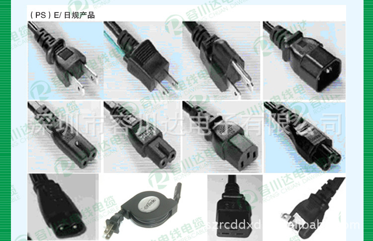 供应容川豪客户需求专业生产日规三插、两插电源线