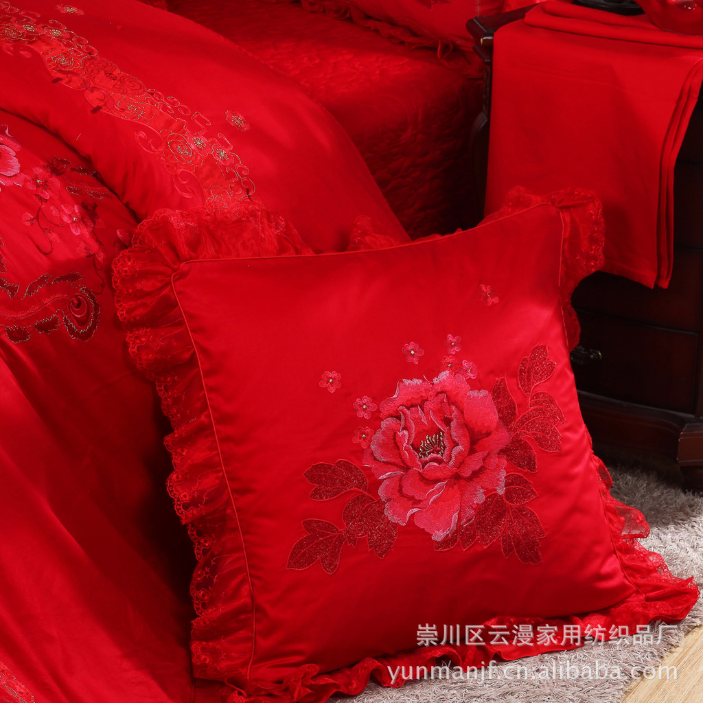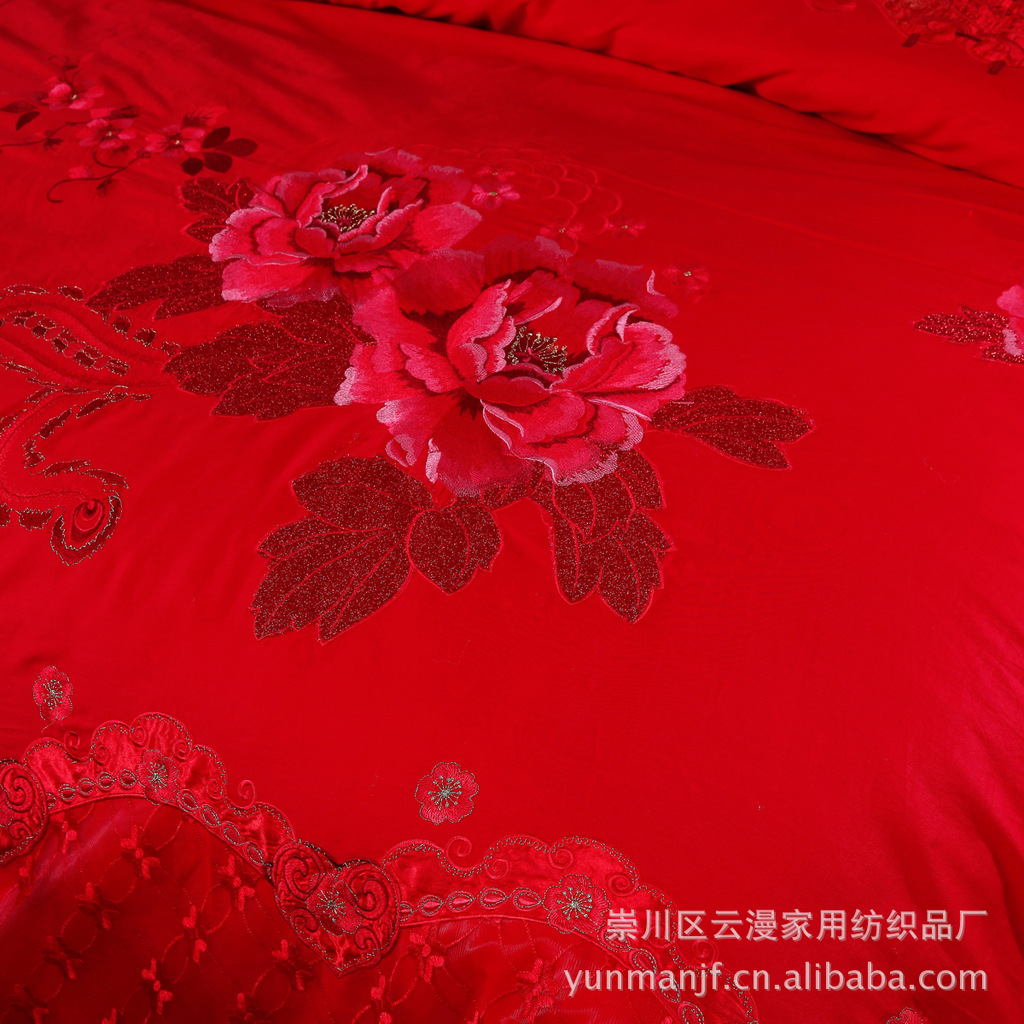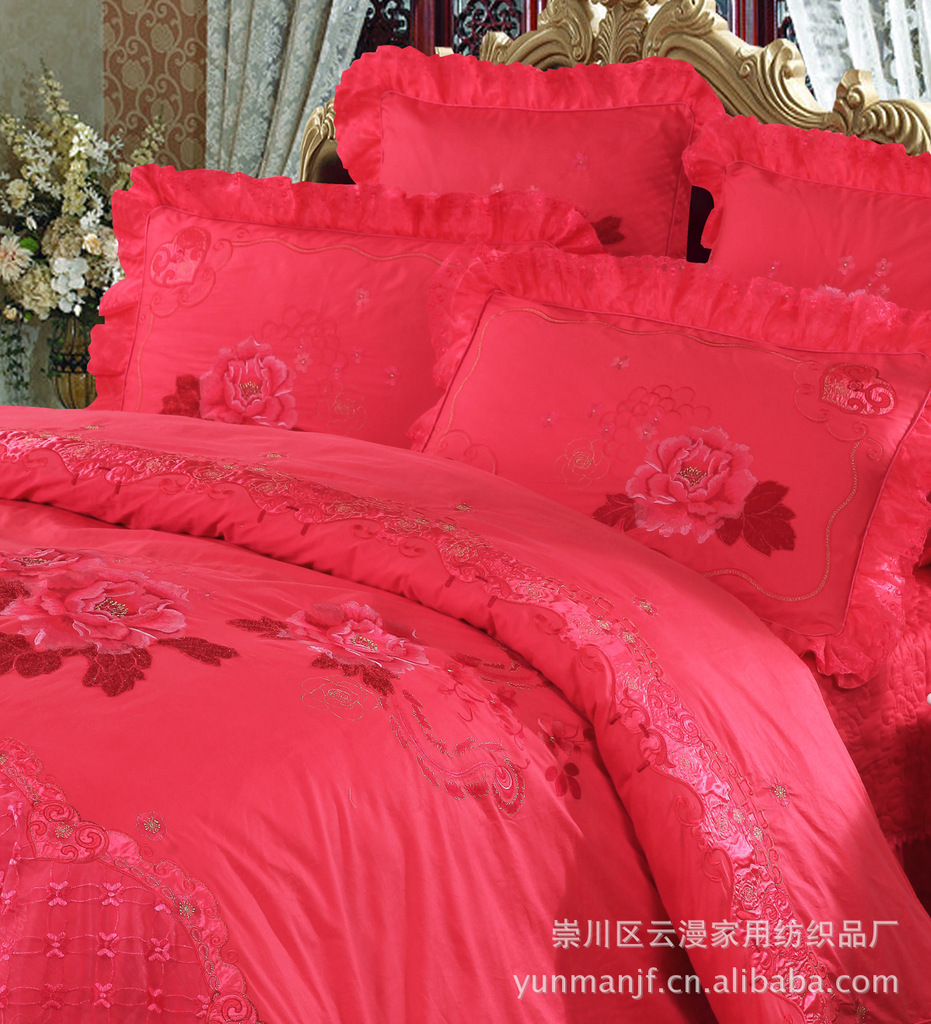 面料采用全棉面料和仿真丝织锦缎精工细作而成做工精细工艺精美绣花栩栩如生生动逼真拥有它就拥有了一辈子的幸福哦衷心的祝福每一位拥有它的新人都幸福快乐一辈子哦