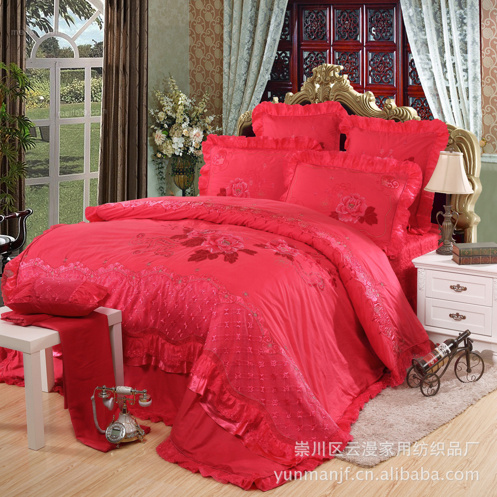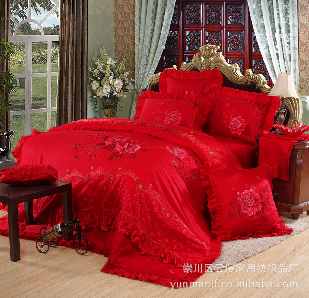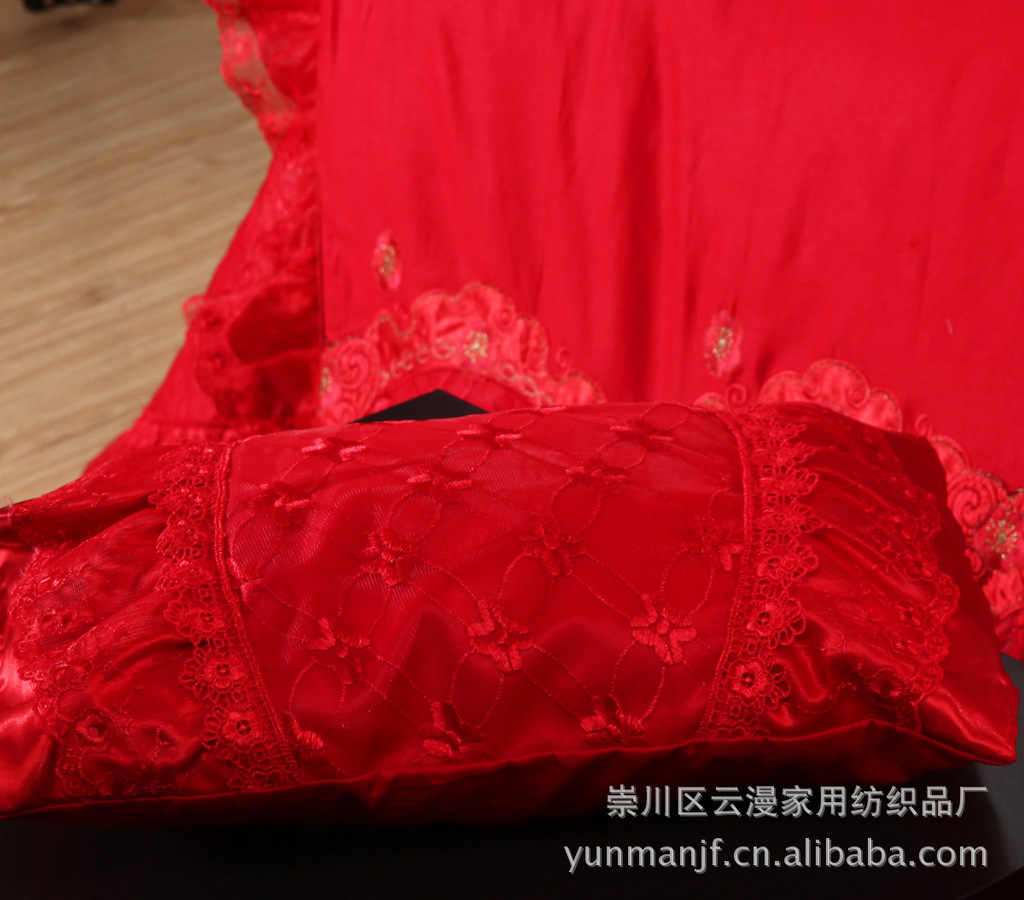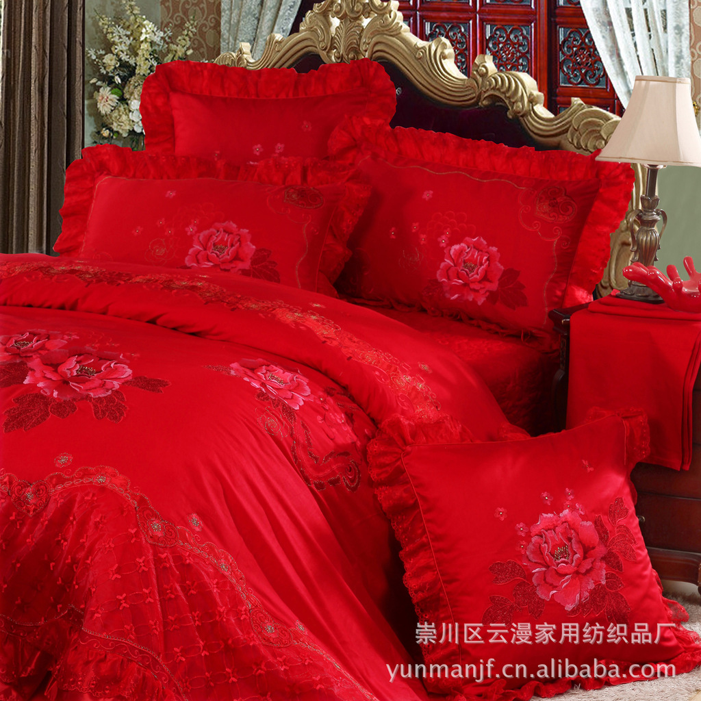 面料采用全棉面料和仿真丝织锦缎精工细作而成做工精细工艺精美绣花栩栩如生生动逼真拥有它就拥有了一辈子的幸福哦衷心的祝福每一位拥有它的新人都幸福快乐一辈子哦