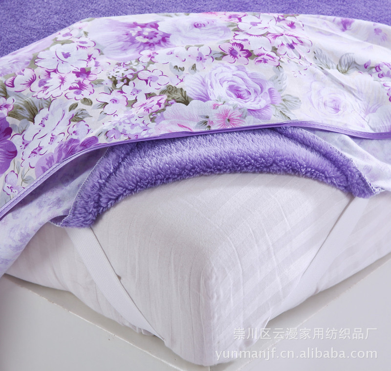 被套里面采用法莱绒材质,法莱绒是珊瑚绒的升级版,比珊瑚绒更细腻更柔软,手感更好,质感也更好了哦!被表用纯棉印花面料点缀,韩版风格,更靓丽!