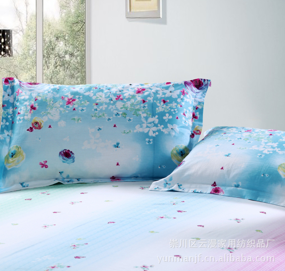 品名Name:爱情滋味 结构Structure:床单四件套:被套200×230×1,床单230×250×1,枕套48×74×2 工艺面料Fabrics:40支纱纯棉斜纹、半活性印花 重量Weight:2.2kg 包装Package:简包装 产品特性Introduction:纯棉斜纹,吸湿及亲肤性很好,摸起来柔软舒适,品质感油然而生;活性印花,使得设计与床品融为一体,凸显档次;繁华的设计非常的出众,营造出超炫的感觉! 【产品名称】:全棉环保AB版印花四件套 【规格】:被套200*230cm 床单(圆角)230*250cm 枕套(信封式)45*70cm*2 枕套花型一般为被套面料随机裁剪,就是枕套有可能会是被套的任何一个地方。 【适合范围】:适合于被子为200*230的。标准套件,适用床大小为:150*200cm 180*200cm 的床。由于床单为230*250的,用在1.8米的床上挂边较少。 【产品洗涤说明】:全棉面料,深色的第一次水洗会有浮色现象,注意不要用热水或开水洗涤,并且第一次浸泡不要超过10分钟,如果方便,适当加一点食用盐。