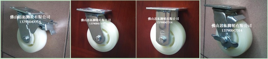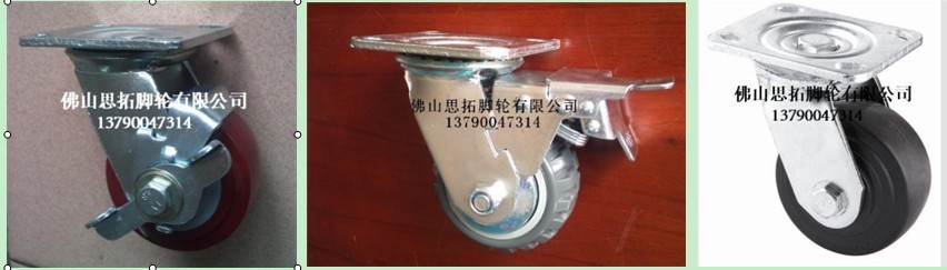 重型型脚轮,包括4,5,6,8寸,板厚6MM架厚,架身重,非市面偷工减料设计出来的中型脚轮可比,可搭配双轴PVC,双轴PVC,风火轮,双轴PP轮,通花轮,TPR,PU轮等,满足各种客户的需求。有定向,有刹车适用于行李车、手推车、平板车、货仓车、物流车、高尔夫球车、垃圾桶、移动式灭火器、花园车、物流车等工具车用的和空压机、移动式清洗机、发电机、移动式小型搅拌机、草坪机、拖车、微耕机、劈木机等机械上。