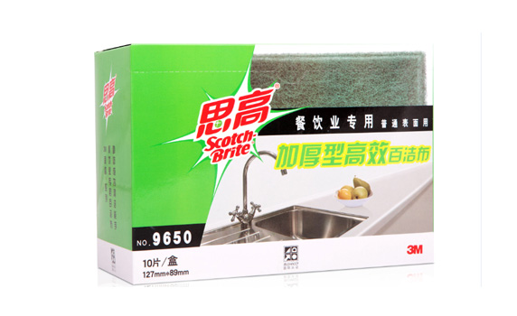尺寸:6英寸x9英寸(1英寸=2.54厘米) | | | | | | | | |  | 清洁各类厨卫器具、安全高效快捷增亮、适合锅具烧焦烧黄后使用 | | | | | | | | |  | 手掌型加厚百洁布、去污力强,可配合961握把一起使用,提高清洁效率。适用于餐厅厨房较重污垢的清洁,如铁锅、闷锅、炉灶等。 | | | | | | |