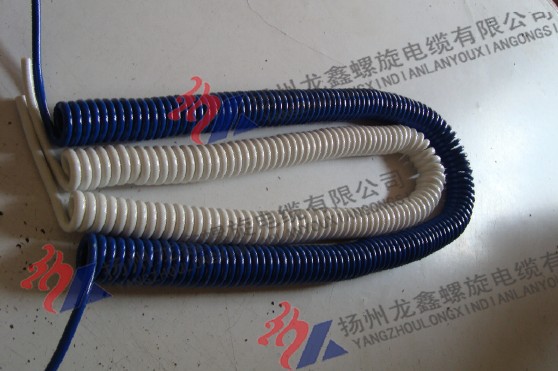 螺旋电缆螺旋电缆线 螺旋线(PUR/PVC)简述几乎所有的行业都有必要使用螺旋电缆。不管在通信(电话,无线电)还是医疗技术、电力机车工业、机械工程,或者在照明工业,螺旋电缆螺旋电缆线 螺旋线在每个地方都有应用。除了电气-机械优点外,螺旋电缆螺旋电缆线螺旋线常常还是作为优秀的光学结构解决方案。如果您使用PVC和PUR电缆,螺旋电缆螺旋电缆线螺旋线的颜色大多数情况下可以和物体的颜色相协调。同时我们也可以供应:屏蔽型螺旋电缆螺旋电缆线 螺旋线、仪器仪表用螺旋电缆螺旋电缆线 螺旋线、汽车电源用弹簧线螺旋电缆线螺旋线、变压器电源用螺旋电缆螺旋电缆线 螺旋线、大型机电设备用螺旋电缆螺旋电缆线 螺旋线、清洗机电源用螺旋电缆螺旋电缆线 螺旋线、电表自动计费专用5芯弹簧线螺旋电缆线 螺旋线等等。一、电缆螺旋电缆线 螺旋线分类:1、PVC螺旋电缆螺旋电缆线 螺旋线:经济性高,低机械和抗化学能力。中等弹性力。适合于轻工业、计算机等场合安装使用。 2、PUR螺旋电缆螺旋电缆线 螺旋线:非常好的弹性力。具有极佳的机械和化学性能,特别耐寒、耐油、抗气候、抗磨损和抗撕裂。适用于机械制造、电动工具等场合使用,在应用的大多数领域,是最优的解决方案。 3、PUR屏蔽型螺旋电缆螺旋电缆线 螺旋线:具有极佳的化学性能。特别耐寒、耐油、抗气候、抗磨损和抗撕裂。螺旋整体屏蔽结构可抵抗各种电磁干扰,特别适用于医疗、半导体、芯片等所有需要极小安装空间的场合。二、技术指标:适用范围:用于额定交流电压450/750V或直流电压6V-1000V以下,需要来回上下移动的装配电路汇总接线,如电话、计算机、电子设备插件及汽车、拖车、弹簧连接线。螺旋电缆线 螺旋线产品特性:具有良好的柔韧性和弹性(伸长长度可达原弹簧长度3.5-4倍)。有良好的耐寒性,阻燃性,耐油性和耐磨性。可根据场合不同要求生产各类螺旋型弹簧线。螺旋电缆线 螺旋线导体结构:使用单股或多股铜丝(或镀锡铜丝)。螺旋电缆线 螺旋线绝缘材料:可采用聚氯乙烯,聚乙烯,聚丙烯或叫联聚乙烯及氟塑科,以满足不同场合的要求。螺旋电缆线 螺旋线护套材料:一般用聚氨酯弹性料。工作温度:根据客户要求,耐寒-65度;耐温80度、105度、125度。螺旋电缆线 螺旋线生产范围:标准截面:0.12~4平方米(特殊规格可根据客户要求生产)。螺旋电缆线 螺旋线电径芯数:1~37芯(特殊规格可根据客户要求生产)。螺旋电缆线 螺旋线弹簧长度:任意。