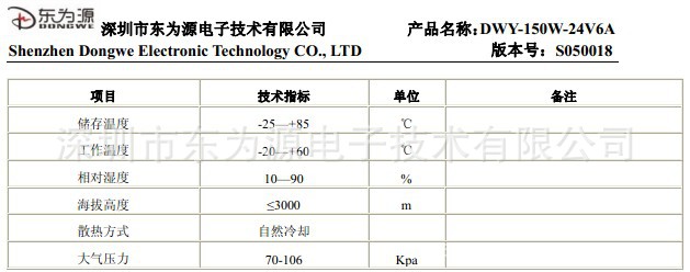本电源为AC/DC电源, 主要用于 LED 恒流驱动,灌胶密封,防水等级 IP65 。输入电压为 90-265 VAC,输出电压为24V/6A.,最大输出功率150W。